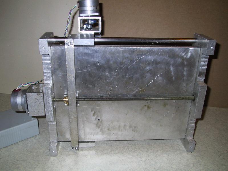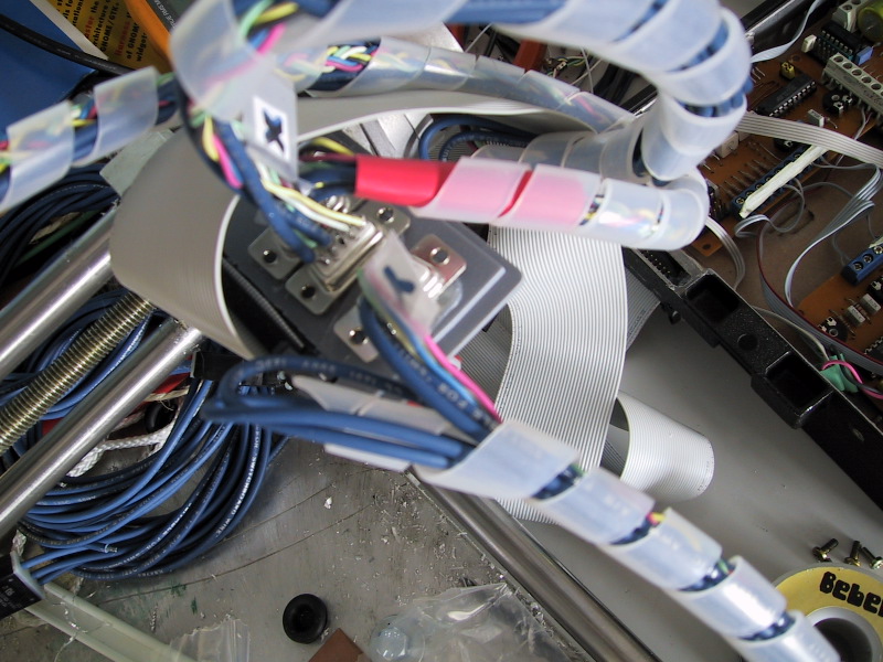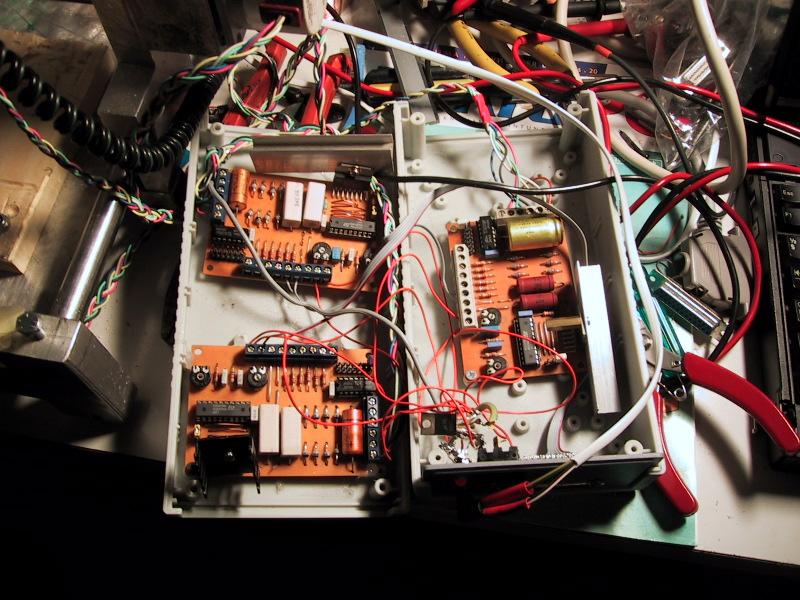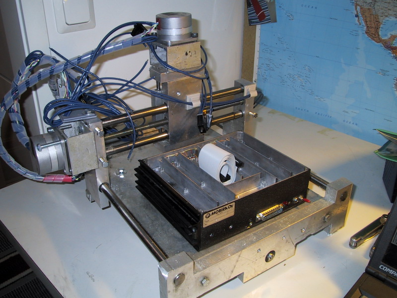 Here is my new control box. It's made from old NMT450 phone aluminium case. There is 30 pin cable between the box and the machine. Motors are attached with D9 connectors to part that changes three D9 connectors to 30 pin flat-cable connector.